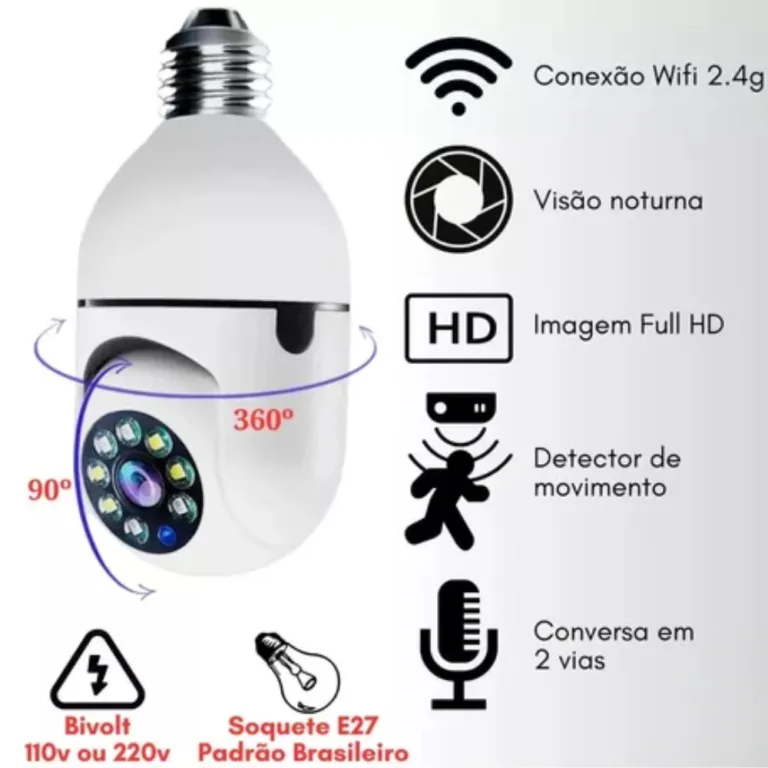 Câmera ip ptz Robô Lâmpada Wifi Giratória Seguidora ajustável pelo app para uma melhor direção, BIVOLT!